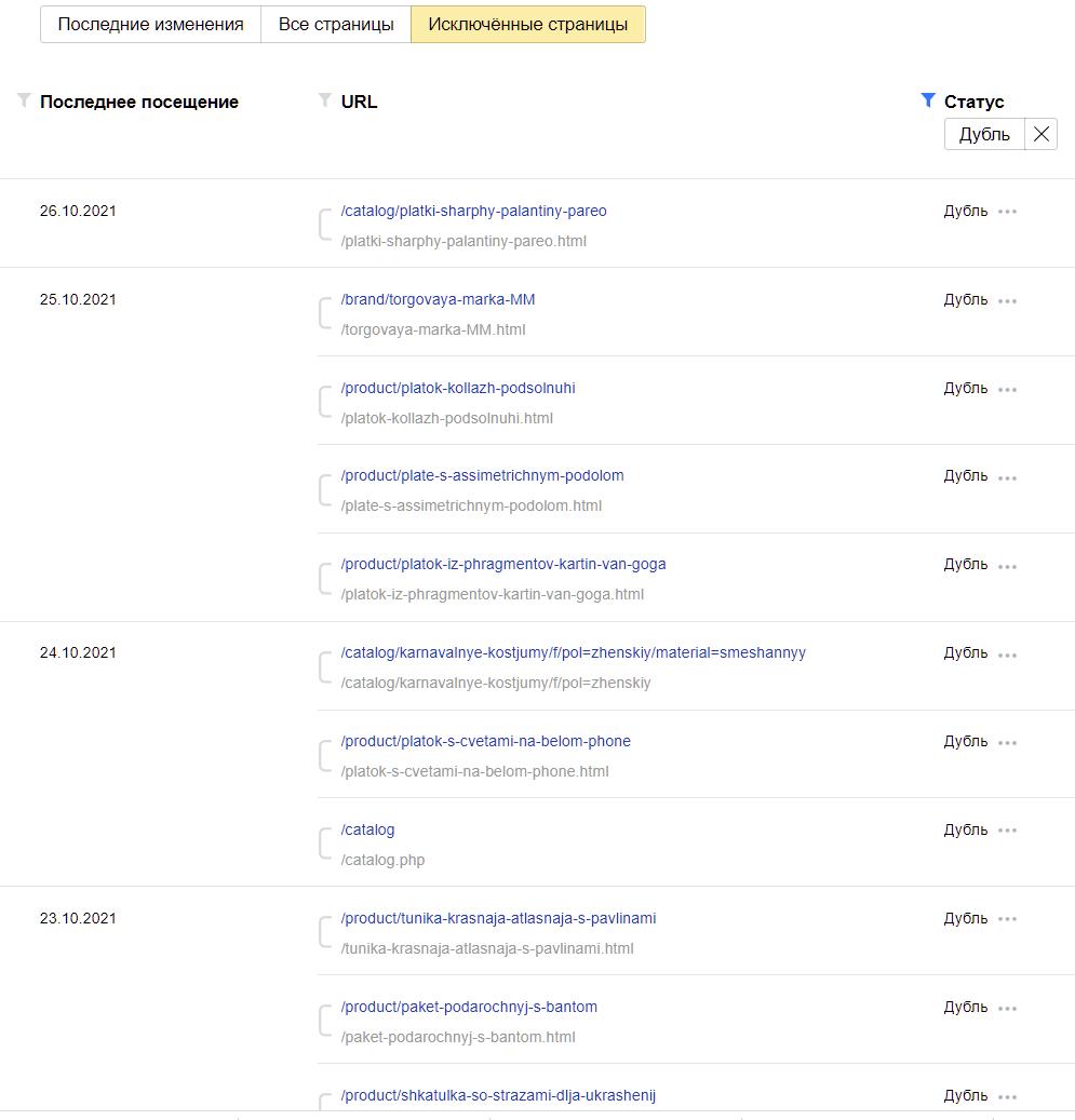 Из-за неправильности настроенного шаблона seo страниц фильтров в индекс залетело 23к