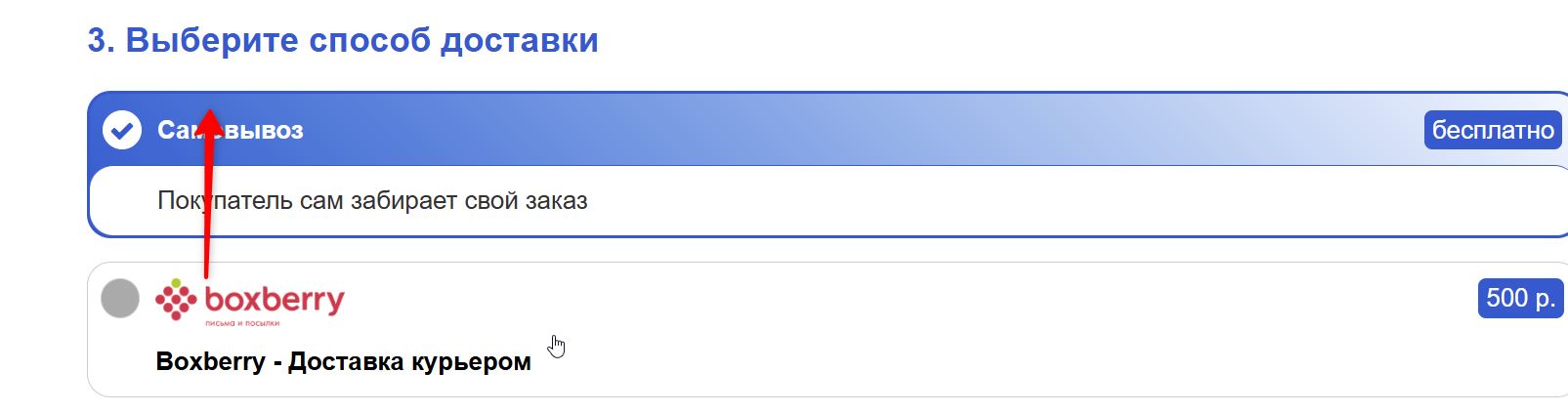 Как в способе доставки Самовывозом добавить иконку, как у других способов?