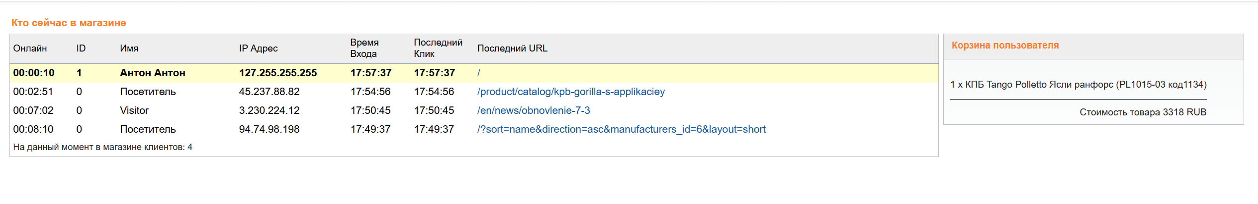 Но есть нюанс. Обратите внимание - ниодного одинакового. Раньше показывало, как человек обходит страницы в режиме реального времени (один ip и страницы), а сейчас только точка входа(