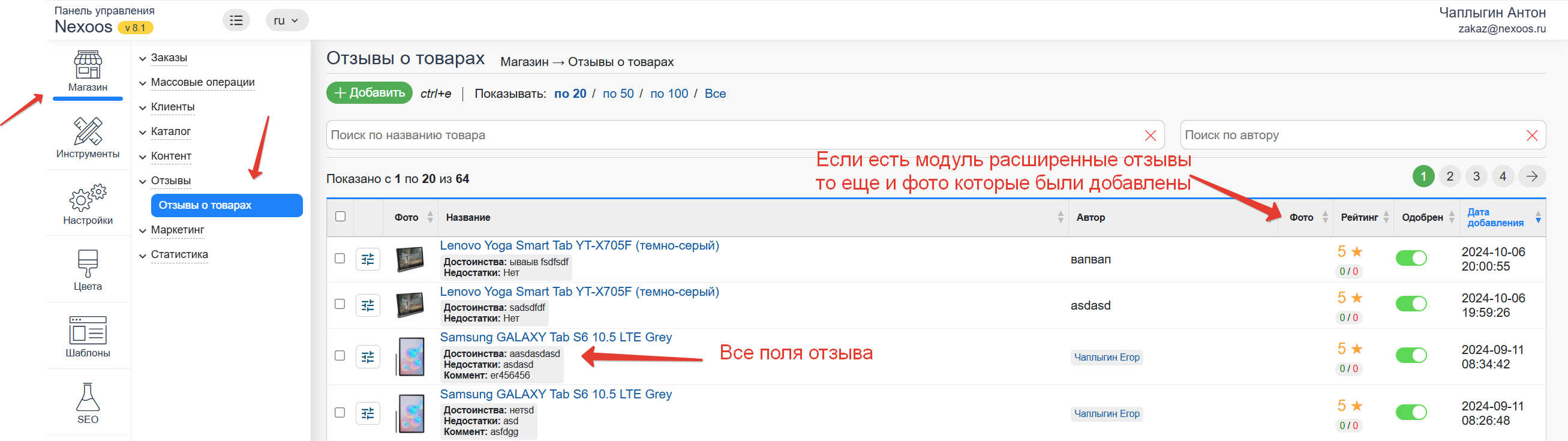 По крайней мере старый функционал в любом случае в нем код вывода есть , но я сходу не нашел, **прилагаю весь файл: /admin/reviews.php **