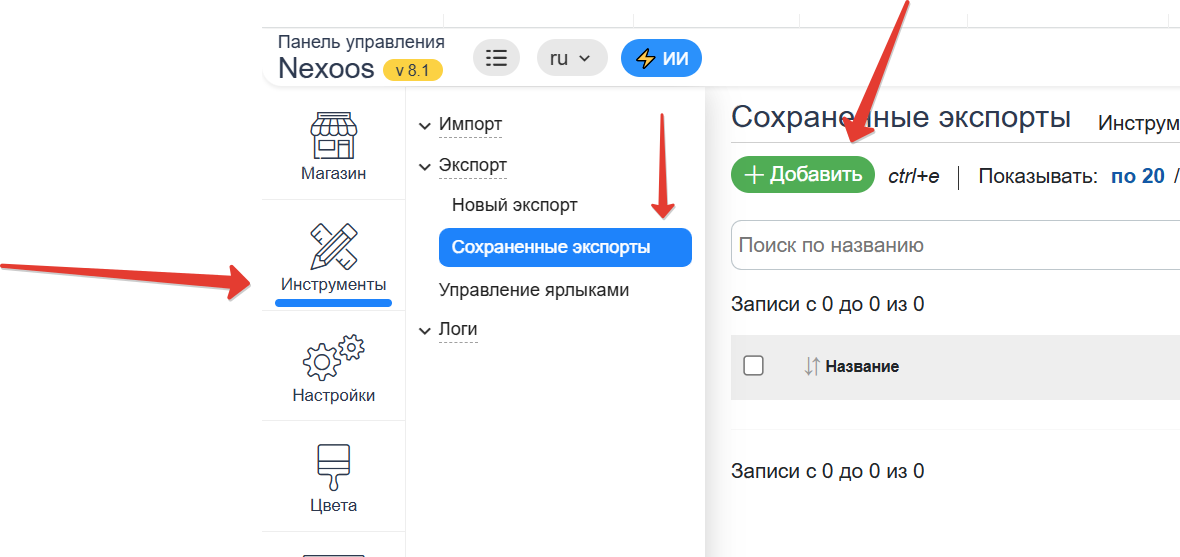 Так же доступен экспорт выбранных товаров
