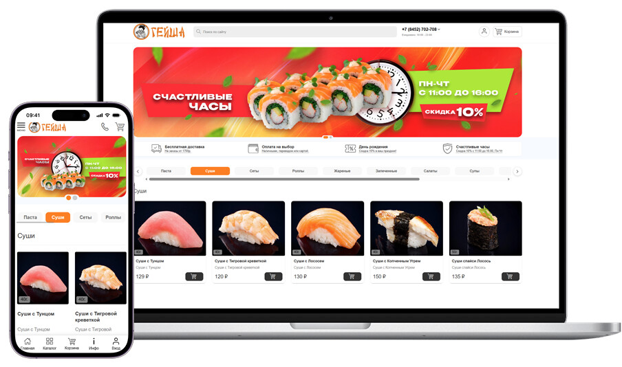 Наверняка каждый из вас сталкивался с не удобными сайтами для заказа суш и ролл у себя в городе, мы не исключение)
